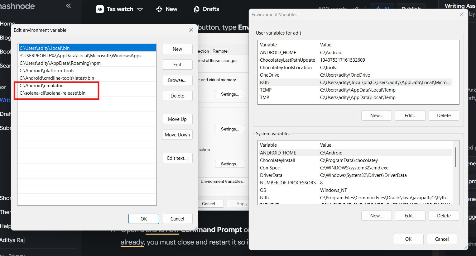 bindirectory inside your extracted Solana folder. If you followed Step 2 exactly, this will be:C:\solana-release\bin.Click OK on all three windows to save your changes.